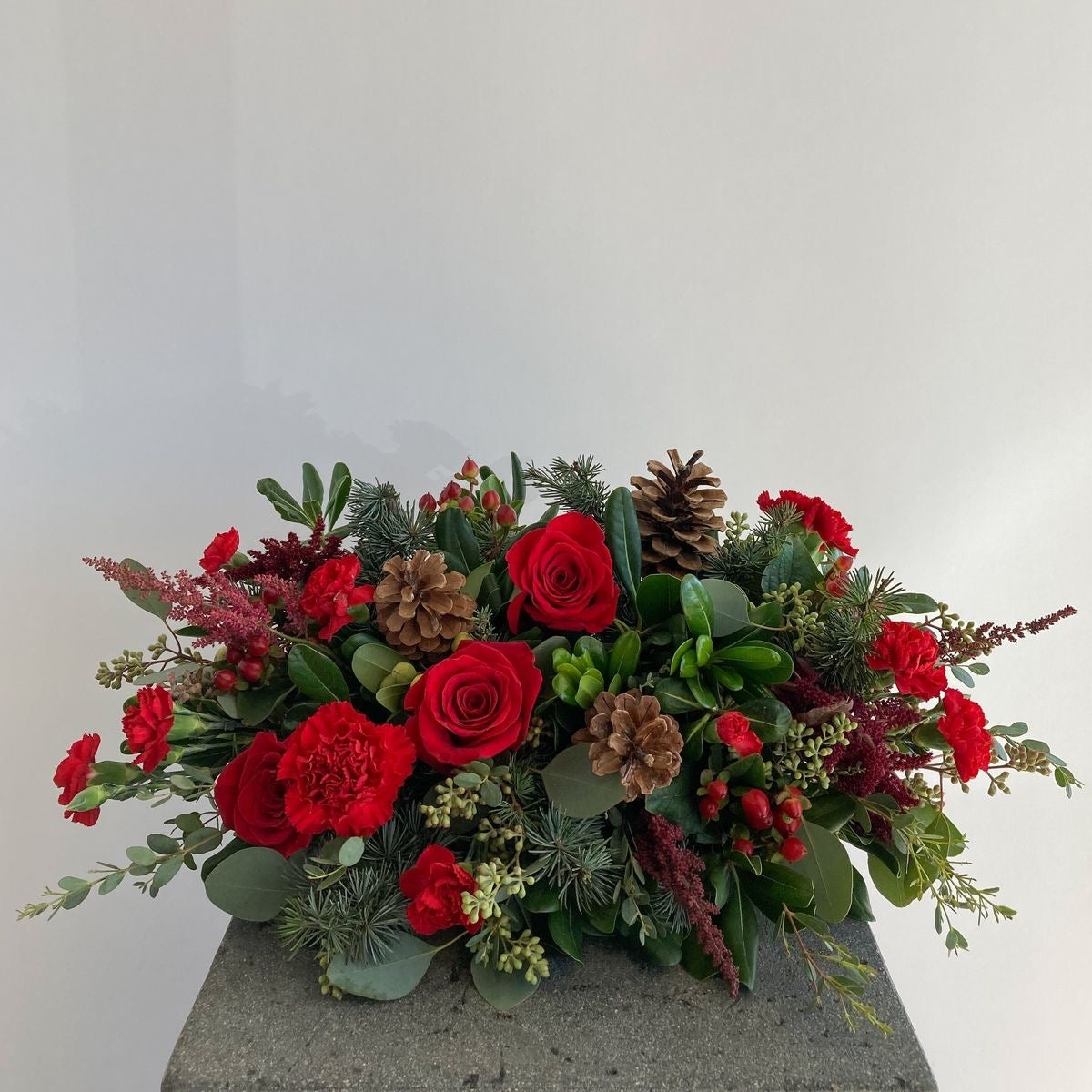 Celebrate the season with festive floral designs featuring rich reds, winter whites, lush greens, and holidays accents. Perfect for gifting, decorating, and spreading Christmas cheer.